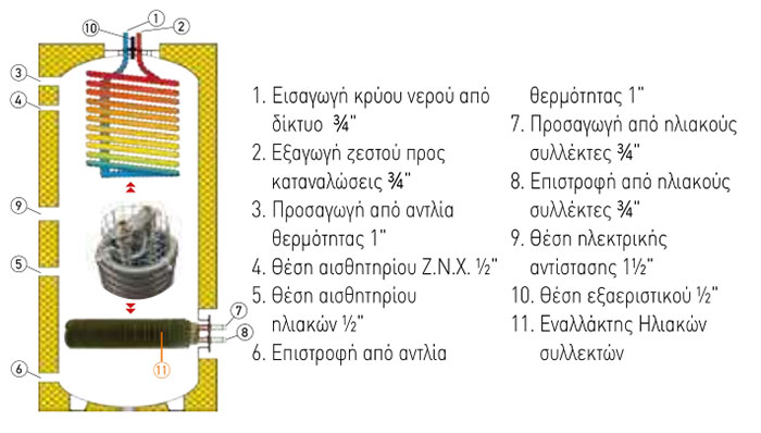 Αποδοτικό – Λειτουργικό – Εύκολο στην εγκατάσταση Η γρήγορη φυσική θέρμανση του ζεστού νερού κατανάλωσης από το δοχείο άμεσα και χωρίς βεβιασμένη κυκλοφορία σε συνδυασμό με την ύπαρξη του μεγάλου σε επιφάνεια εναλλάκτη, το καθιστούν ιδιαίτερα αποδοτικό και λειτουργικό χωρίς να απαιτείται εξειδικευμένο προσωπικό εγκατάστασης και συντήρησης.
